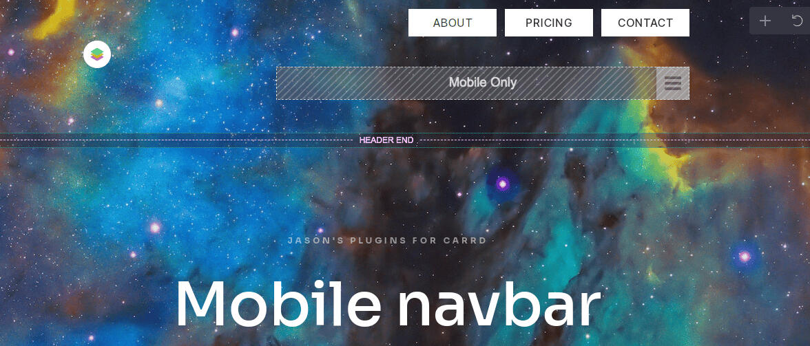 A free responsive navbar template that works on both mobile and desktop, made using only native Carrd elements. No custom code required.