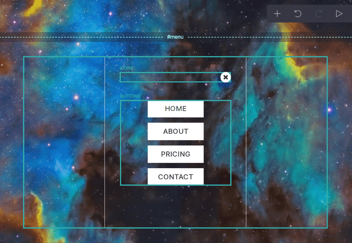 - Below the Icon element, add a Buttons element to this Section. Click Add to create the requisite number of buttons to reflect the Section 'pages' for your Carrd site. In my case, I went with the typical About, Pricing and Contact. As this is the mobile menu, I also added a Home button to help the user go back to Home (#) page.